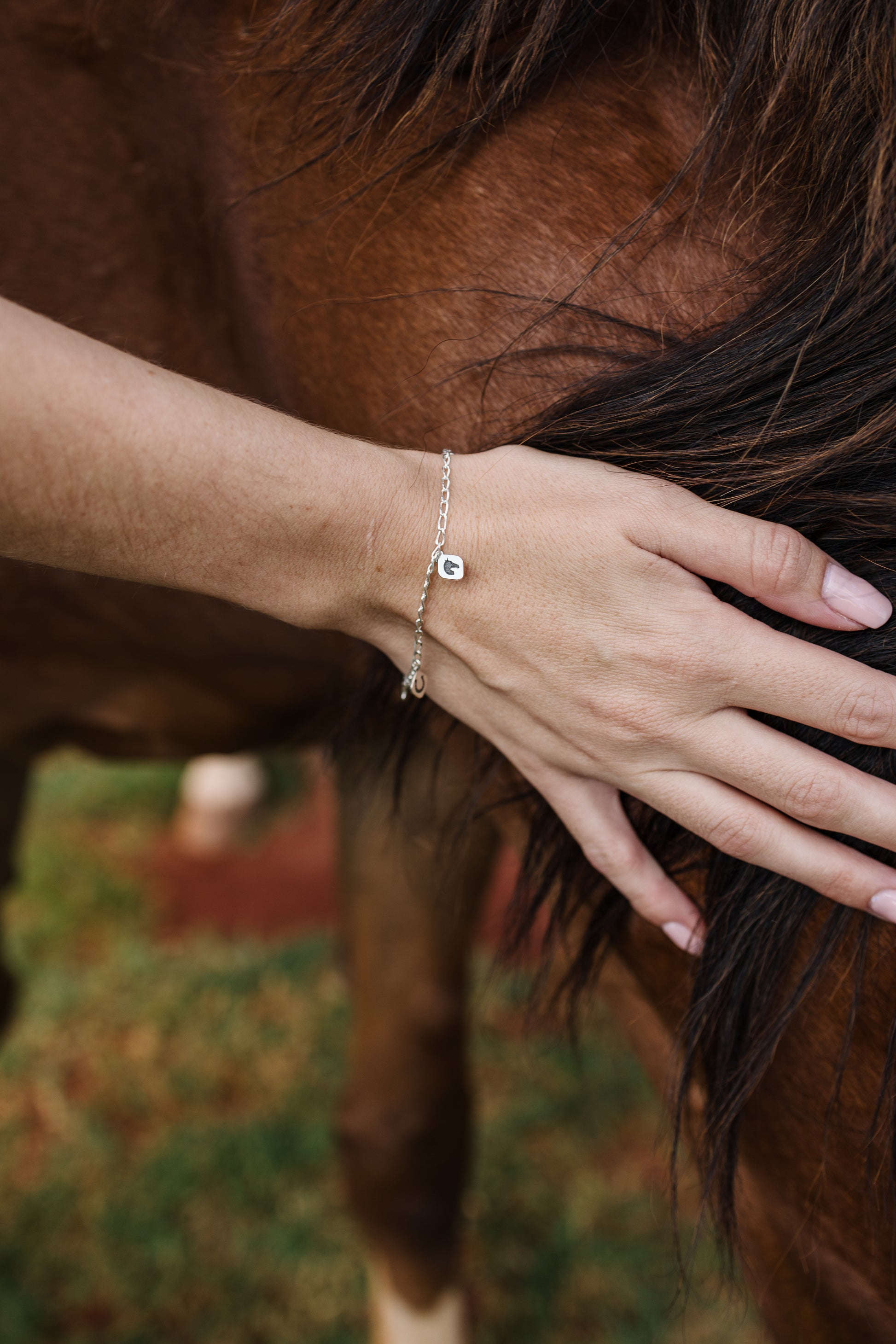 - Materials: Sterling Silver and Argentium Silver Bracelet, 5 engraved charms