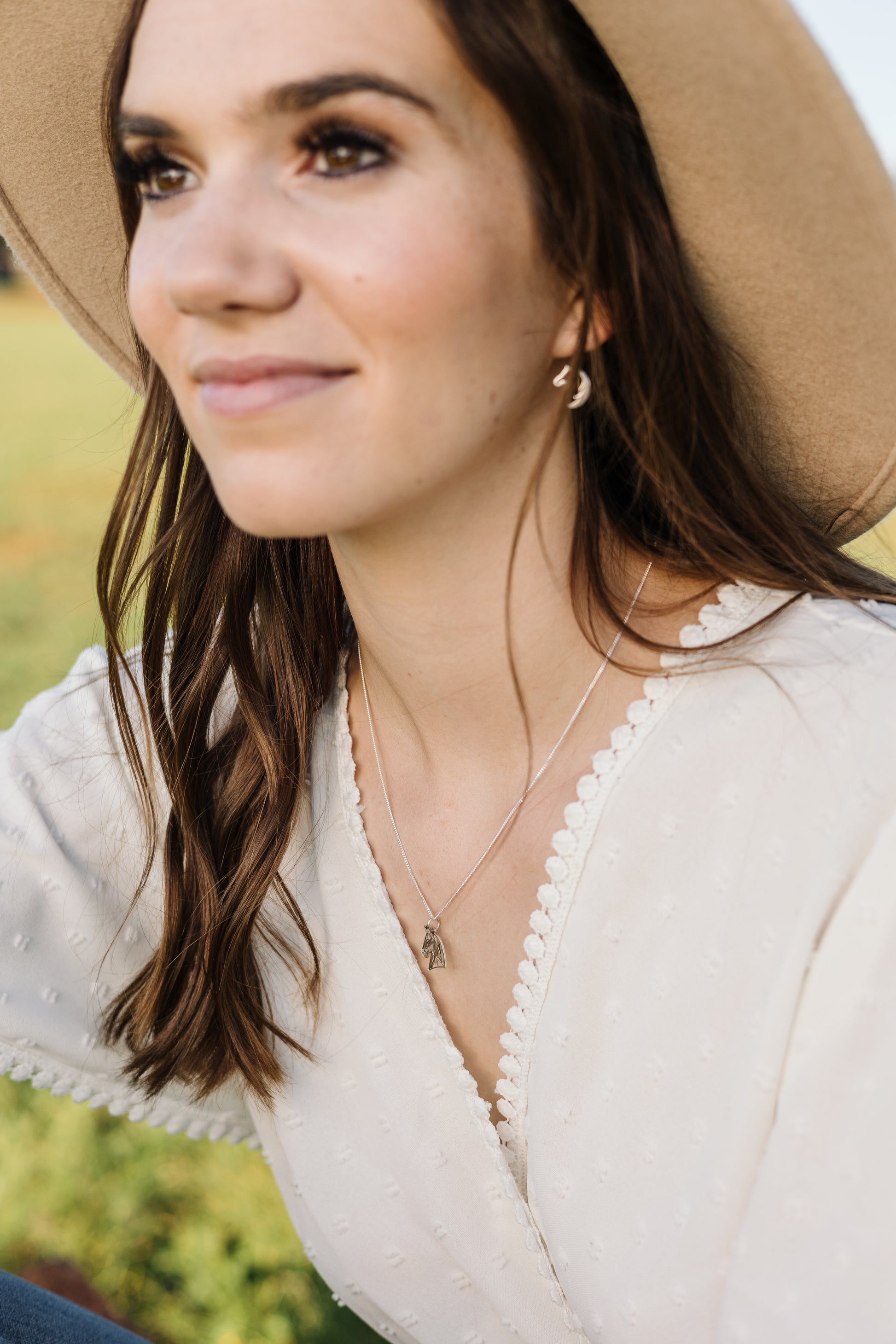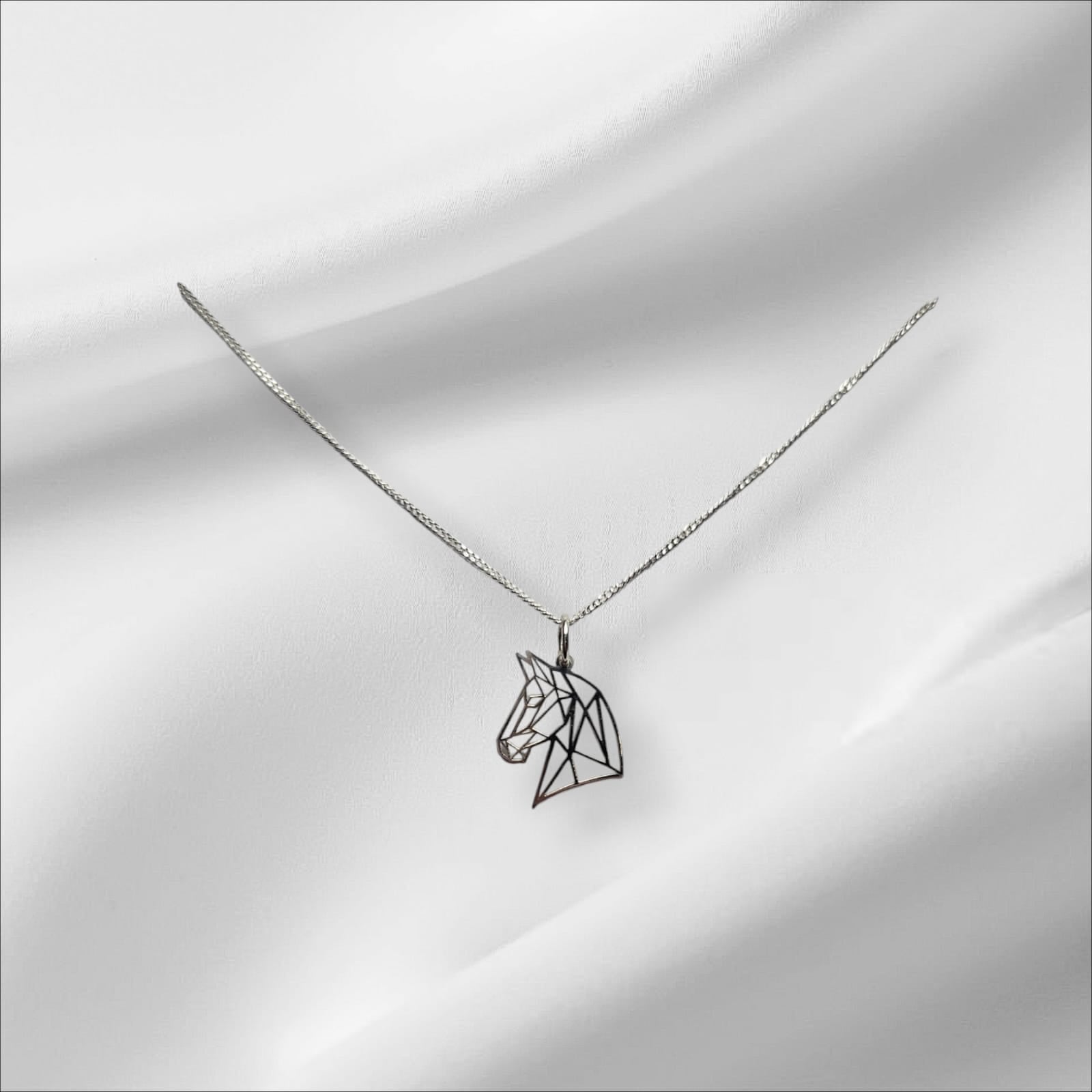 Argentium Silver Geometric Horse Head Pendant with Sterling Silver Chain