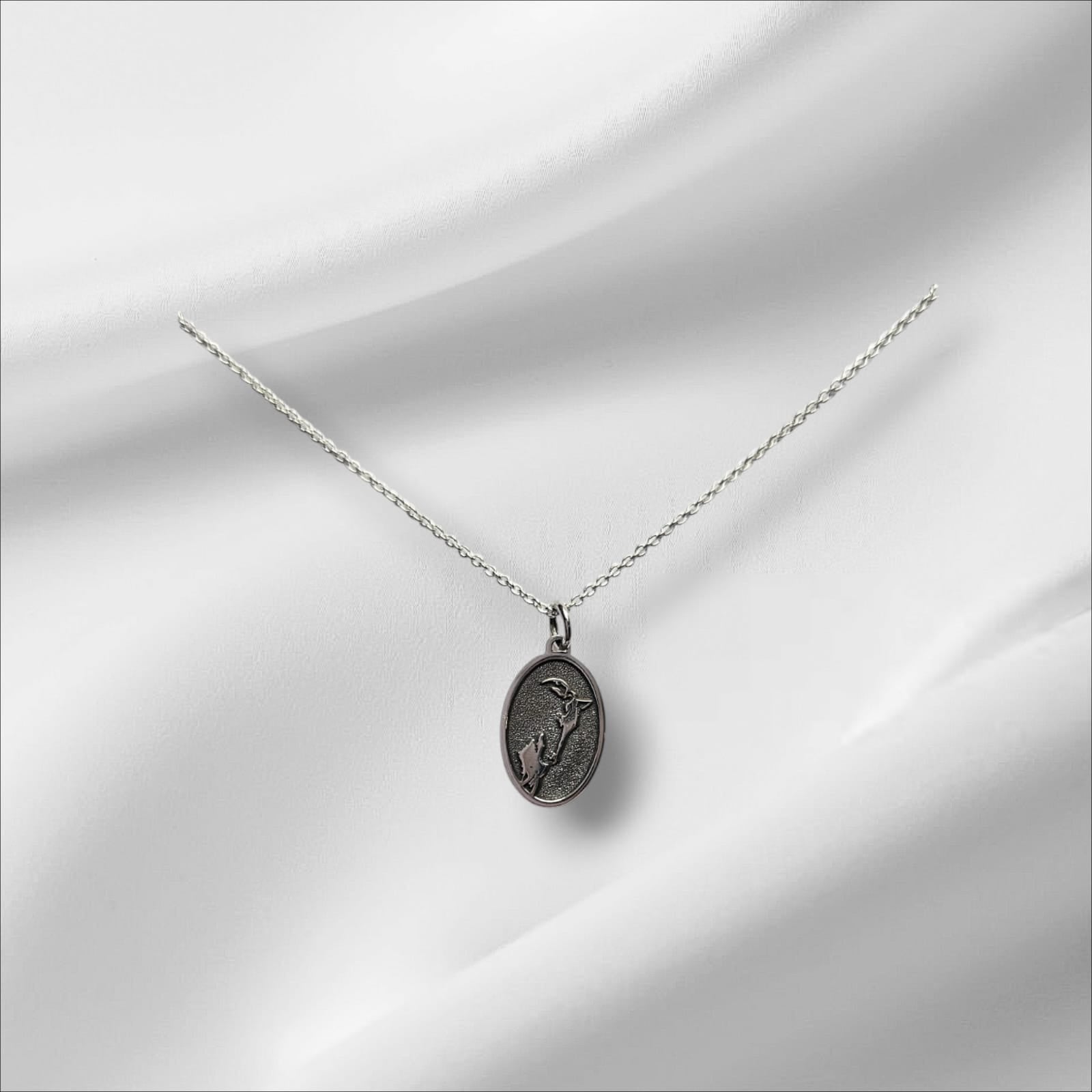 Argentium Silver Oval Pendant with Embossed Horse, paired with an Sterling silver chain, known for its brilliant shine, tarnish resistance, and hypoallergenic properties, this pendant offers both durability and sophistication. The sleek chain complements the pendant’s intricate design, creating a refined and timeless look suitable for any occasion.