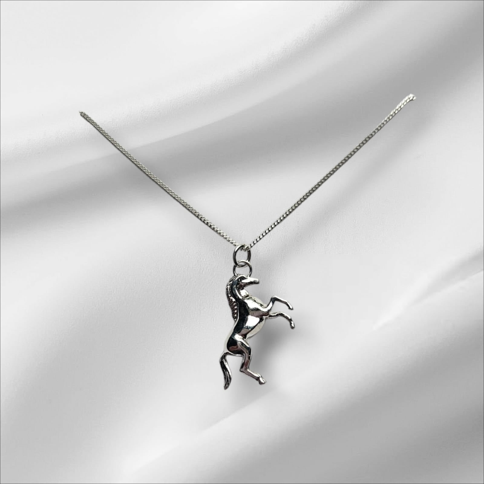 Silver Argentium Solid 3D Cast Full Horse Pendant paired with a sleek Sterling silver chain, renowned for its brilliance, tarnish resistance, and hypoallergenic properties, this pendant offers both lasting beauty and durability. The polished chain complements the intricate design of the full horse, creating a refined, timeless look suitable for both everyday wear and special occasions.